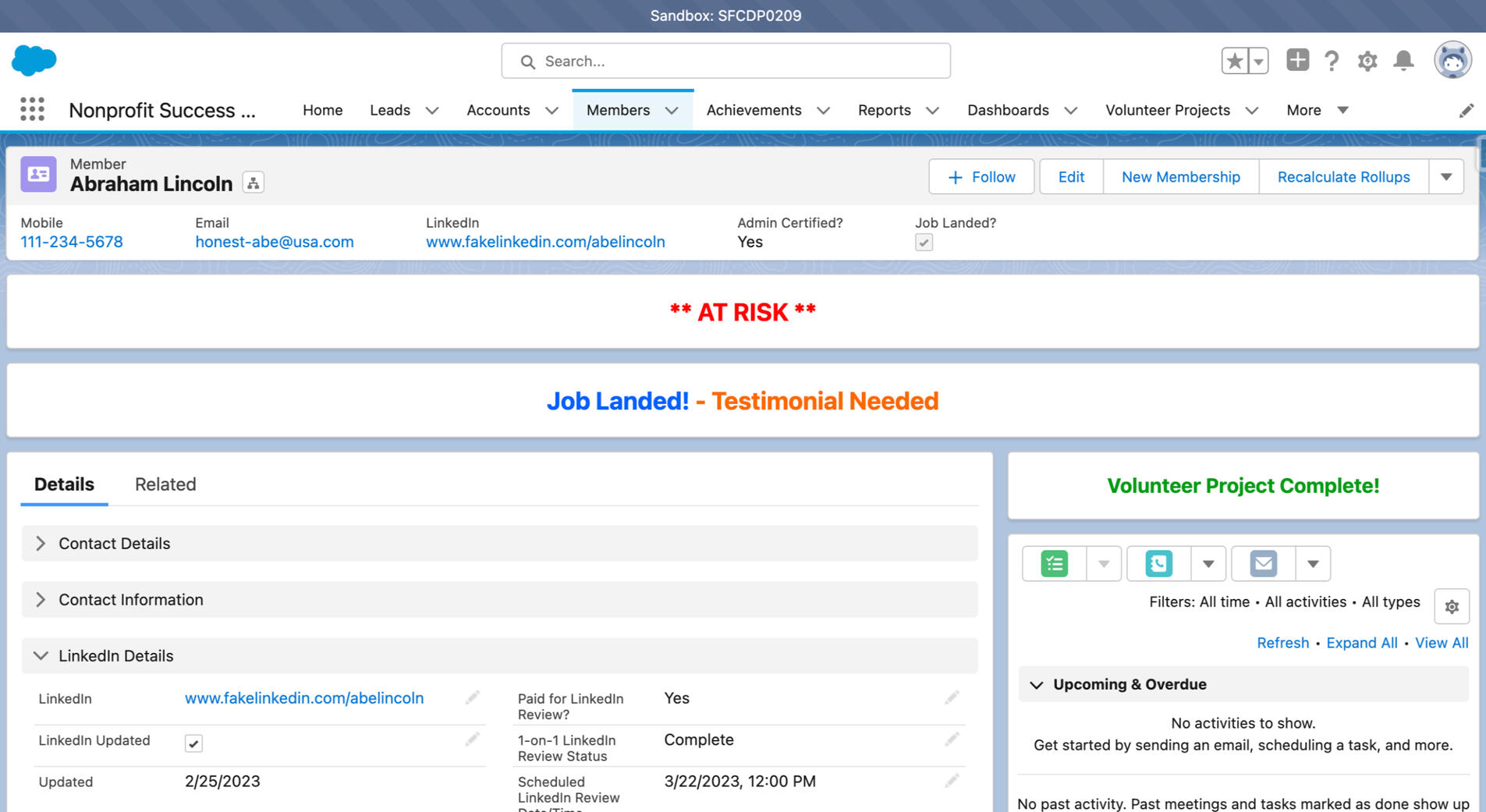 Page LayoutSamples of the objects, fields, and page layout for a member record. All shown data is faux.