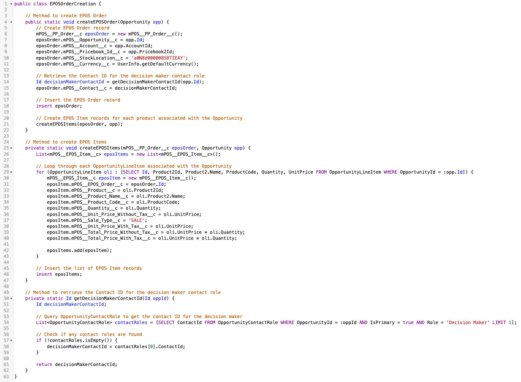 EPOSOrderCreation Class and Methods