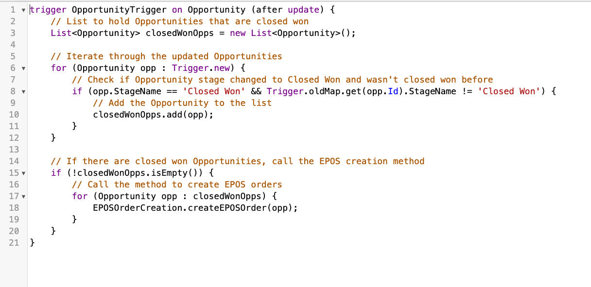 Custom Order Creation from an OpportunityPart of my current role is QA testing. Whenever an internal release is deployed, I am responsible for understanding what is in the package and ensuring the enhancements/fixes are working correctly.During a particular release, we needed to create an order in our custom object from an opportunity to test how an "external" order functioned. While a flow may have been a suitable option, code was preferred because it matched how our client operated, and they would be using this enhancement heavily.I wrote the code to test the feature and see if it worked properly.